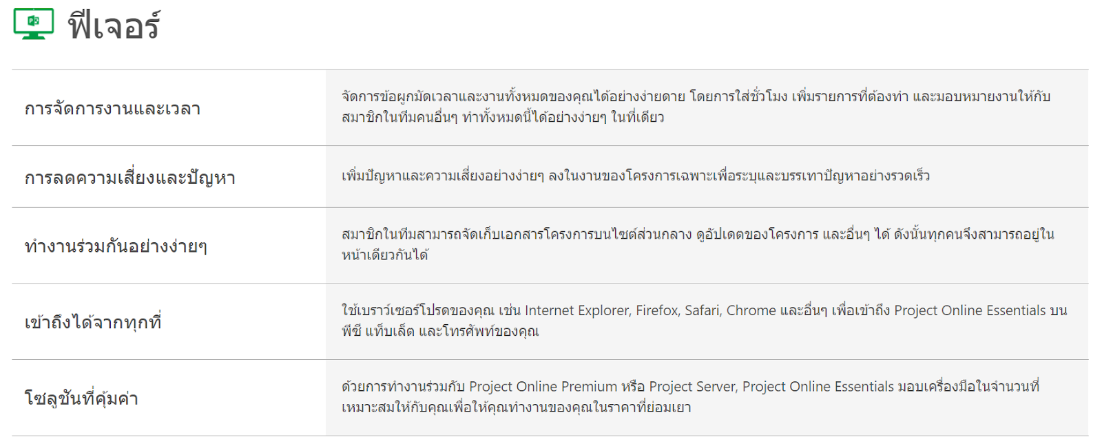 อ้างอิงจาก https://technet.microsoft.com/en-us/library/project-online-service-description.aspx