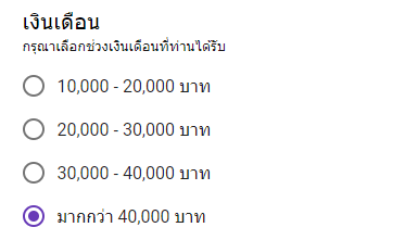 เป็นฟอร์มสำหรับสร้างคำตอบแบบตัวเลือก โดยที่ผู้ตอบสามารถเลือกตอบได้แค่คำตอบเดียวเท่านั้น เช่น การเลือกช่วงอายุ หรือเลือกช่วงเงินเดือน เป็นต้น