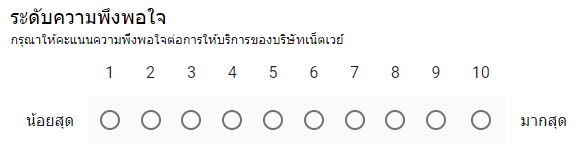 เป็นฟอร์มสำหรับสร้างคำตอบแบบตัวเลือก โดยที่ผู้ตอบสามารถเลือกตอบได้แค่คำตอบเดียวเท่านั้น แต่คำตอบจะอยู่ในรูปแบบตัวเลขเท่านั้น ยกตัวอย่างเช่น การให้คะแนน
