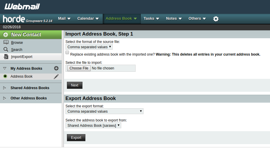 ระบบของ Webmail ที่ทาง Netway ให้บริการจะเป็น horde และ roundcube ซึ่งสามารถ export contact address ผ่านโปรแกรม Webmail ได้โดยตรง ได้ตามขั้นตอนด้านล่างนี้