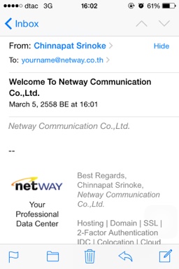 Host Name : mail.yourdomainname.com (ex. mail.netway.co.th)