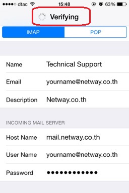 ใส่รายละเอียดการ INCOMING MAIL SERVER **(ต่อ)**