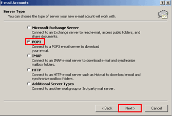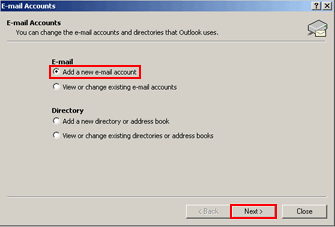 2. ที่หน้าต่าง E-mail Accounts เลือก Add a new e-mail account > Next