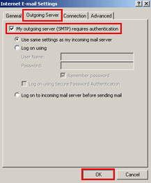 หน้า My outgoing server (SMTP) requires authentication จากนั้นคลิก OK