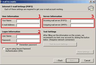 4. ทำการตั้งค่า Internet E-mail Settings (POP3) ดังนี้
