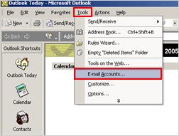 1. เปิดโปรแกรม ที่เมนูด้านบน เลือก Tools > E-mail Accounts...