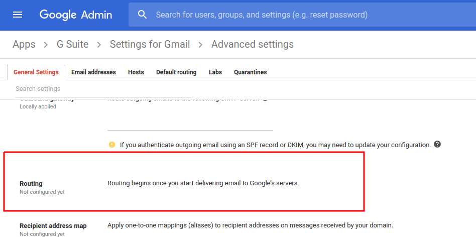 2. เมื่อเข้าสู่ระบบแล้ว ไปที่ Apps > G Suite > Gmail > Advanced settings