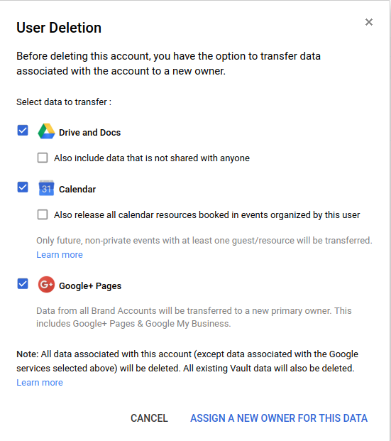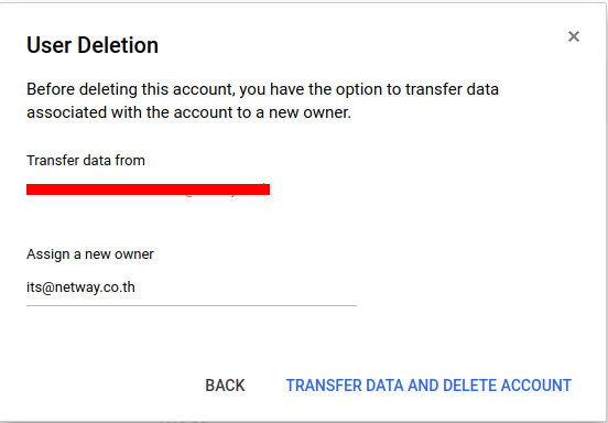 วิธีการคือ เข้าสู่ระบบหน้าการจัดการโดเมน โดยให้ทำการเลือก Google Apps >> Drive >> Transfer ownership หลังจากนั้น ทำการใส่ Email address เพื่อทำการเปลี่ยนความเป้นเจ้าของของเอกสารต่างๆ