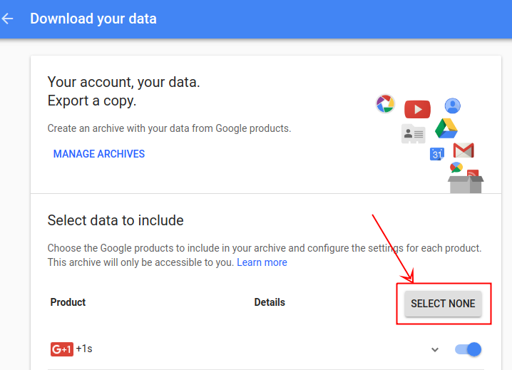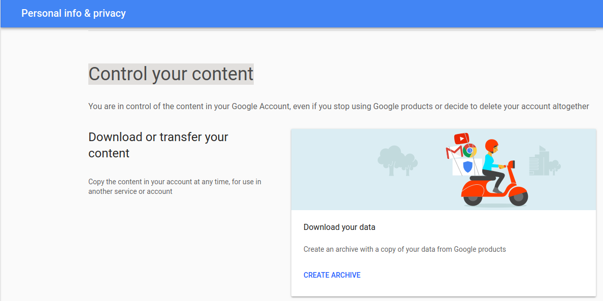 2. จากนั้นเลื่อนลงมาด้านล่างของไซต์ ไปที่หัวข้อ Control your content และเลือกที่ CREATE ARCHIVE