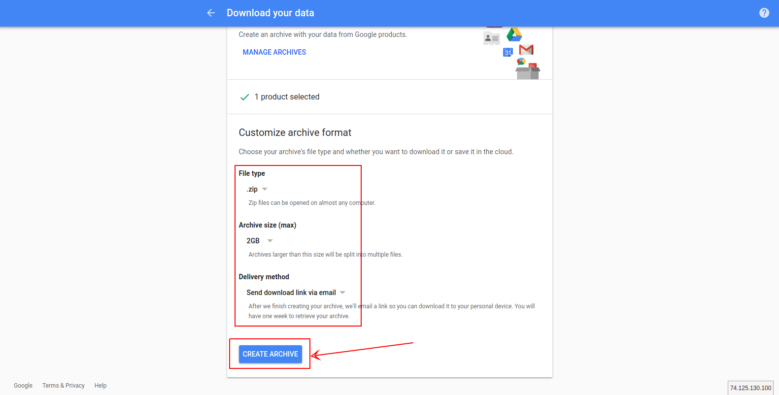 Archive size (max) คือขนาดต่อไฟล์ที่ต้องการ หากมีปริมาณข้อมูล Email มากกว่าที่เลือก ระบบจะทำการแยกไฟล์ให้