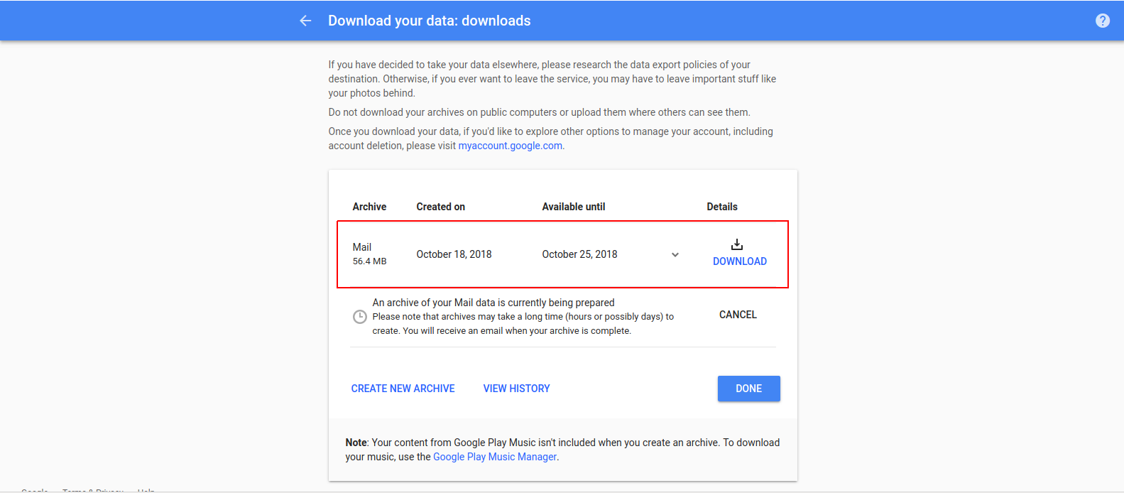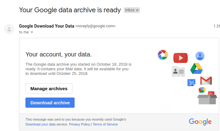 ถือว่าเสร็จสิ้นขั้นตอนการ Backup Email แล้วซึ่งไฟล์ที่ได้รับนั้นจะออกมาในรูปแบบนามสกุล .mbox ซึ่งจะสามารถนำไป Restore ได้บน Email client application หลักๆ ก็ ThunderBird และ Application Mail บน OSX (mac หรือ imac)