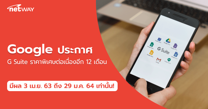 เริ่มสั่งซื้อได้ตั้งแต่ 3 เมษายน 2563 ถึง 29 มกราคม 2564 นี้เท่านั้น ข้อเสนอนี้เฉพาะ Domain ที่เปิด Tenant ใหม่ เป็น Domain ที่ไม่เคยสมัครใช้ G Suite มาก่อน รับสิทธิพิเศษราคาดังกล่าว เป็นระยะเวลา 12 เดือน (1 รอบระยะสัญญาการเปิดบริการ) หลังจากนั้นในรอบต่ออายุ จะปรับเป็นราคาปกติ