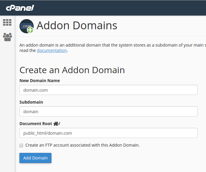 การใช้งาน cPanel : Addon Domains สำหรับ Addon Domains บน cPanel เป็นความสามารถของ cPanel Web Hosting ที่จะยินยอมให้ผู้ใช้บริการสามารถใช้งาน Domain อื่น ๆ ภายใน Web Hosting เดียวกันได้ ซึ่งในกรณีที่เรามีเว็บไซต์อื่น ๆ ก็จะไม่ต้องไปเช่า Web Hosting อีก แต่สามารถใช้งานหลาย ๆ โดเมนได้เลยครับ เช่น