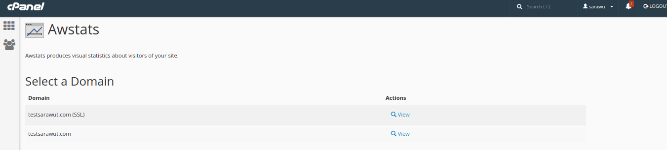 เมื่อเข้ามาใช้งานในส่วนนี้ จะให้เลือกโดเมนที่ต้องการจะดูจากนั้นให้คลิ๊กแสดงผล(view) ก็จะแสดงผลผู้เข้าใช้งานดังรูป