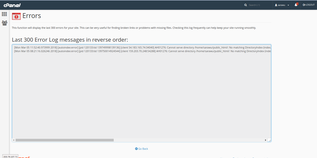 ฟังก์ชั่นนี้จะแสดงผล 1,000 รายการล่าสุดในบันทึกของ Apache สำหรับเว็บไซต์โดเมนที่ใช้งาน
