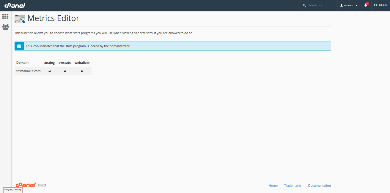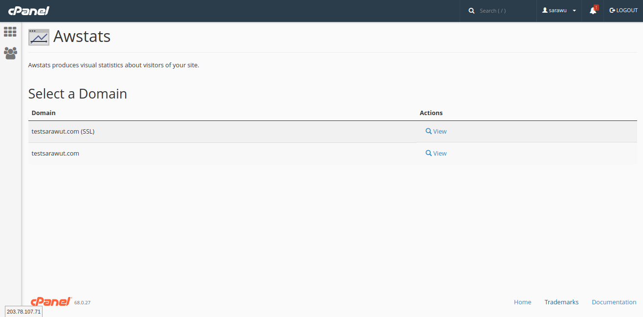 เพื่อการปรับปรุงการใช้งานให้อยู่ในปริมาณที่เหมาะสมต่อไป เมื่อคุณต้องการดูสถิติโดเมนหลัก ให้คุณเลือกที่ชื่อ Domain จะพบหน้าต่างแสดงข้อมูลทางสถิติสำหรับโดเมนหลักของคุณ ตามหน้าถัดไป