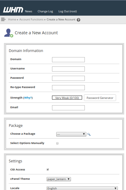 เป็นการสร้าง Hosting โดยลูกค้าสามารถเลือก Package ตั้ง Password ได้เอง