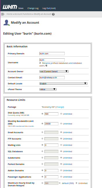 เป็นการปรับหรือเพิ่มพื้นที่การใช้งานของ Hosting โดยให้กด Modify จากนั้นให้ใส่ค่าที่ต้องการเพิ่ม