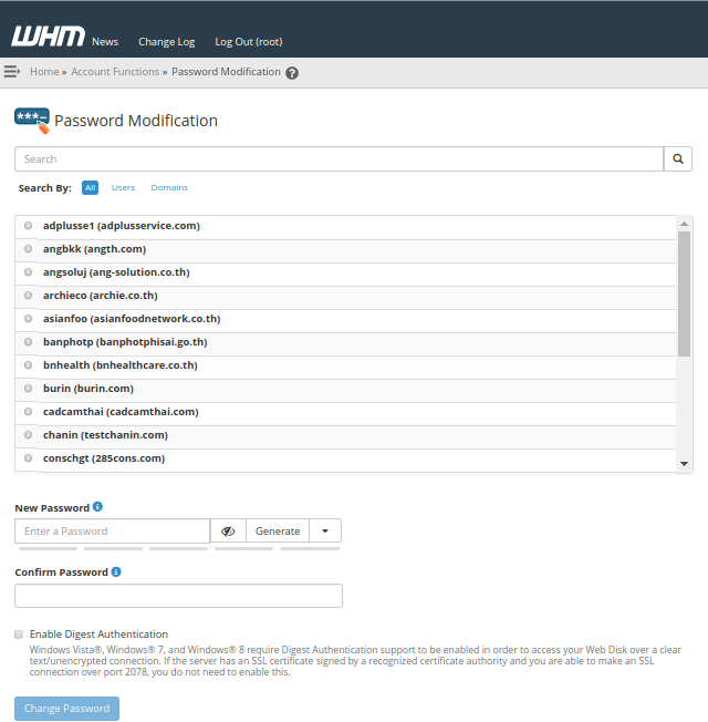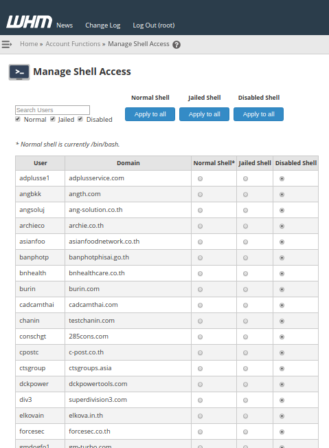 เป็นการแสดงข้อมูล Account ที่ใช้งานและไม่ได้ใช้งานทั้งหมดรวมถึง Sub domain ด้วย