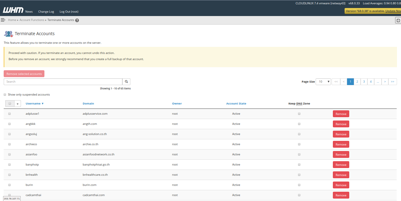 Terminate Account นั้นก็จะถูกลบออกจาก Hosting