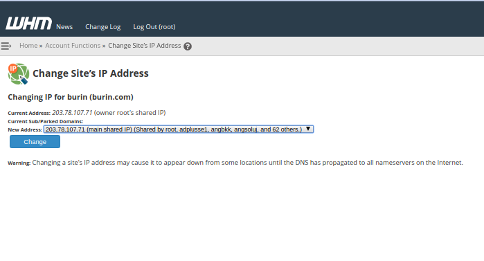 เป็นการเปลี่ยน Ip server ของ Account เพื่อแยก Ip การใช้งานออกจาก Account อื่นๆบน Server