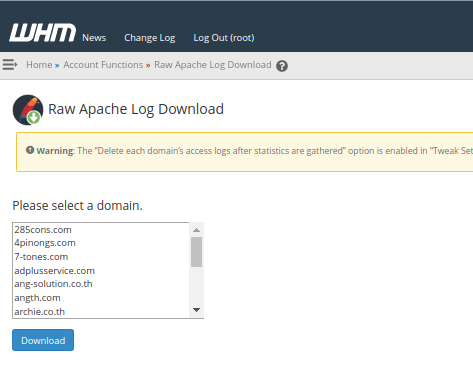 ฟังก์ชันนี้จะใช้ในการ Download ข้อมูล Log Apache การใช้งาน Website หรือการ Access Website ของแต่ละ Account