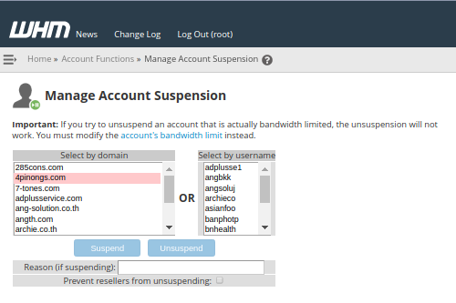 ฟังก์ชันนี้จะใช้ในการตรวจสอบ Account ที่ถูก Suspension และสามารถจัดการ Suspend /