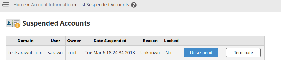 5. Suspended - เมนูแสดงรายการโดเมนที่ถูกระงับให้บริการ