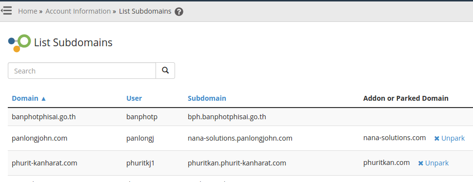 4. List Subdomains - เมนูแสดงรายการโดเมนย่อย