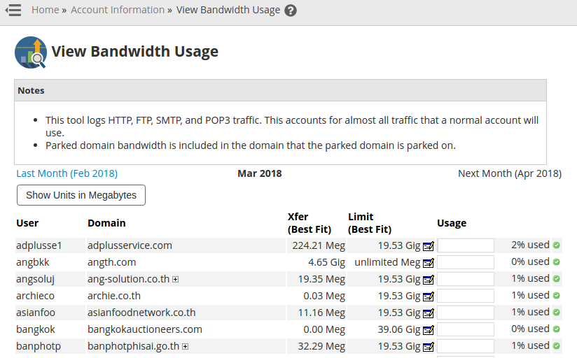 7. View Bandwidth Usage - เมนูแสดงรายการโดเมนที่มีการรับส่งข้อมูล