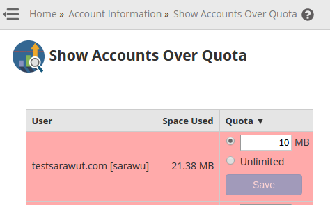User - โดเมนที่ใช้งานเกิน Quota ที่กำหนดไว้
