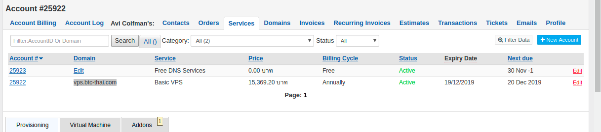 1. เข้าไปที่ Hostbill Account Profile และคลิ๊กที่เมนู Services