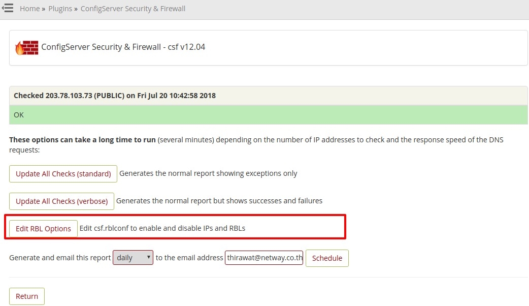เราสามารถทำการตรวจสอบ IP Address ของระบบว่าถูก Blacklist ที่ RBLs ต่าง ๆ ได้ด้วย CSF/LFD โดยมีขั้นตอนการ Configuration ดังนี้