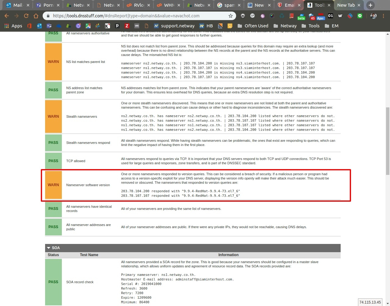 เมื่อทำการเช็คอีกครั้งจะเห็นว่า name server software version จะไม่แสดงแล้วครับ