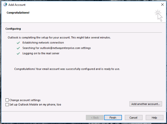4. Outlook version 2016 สามารถเชื่อมต่อได้ปกติ