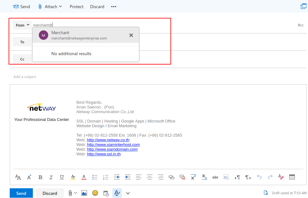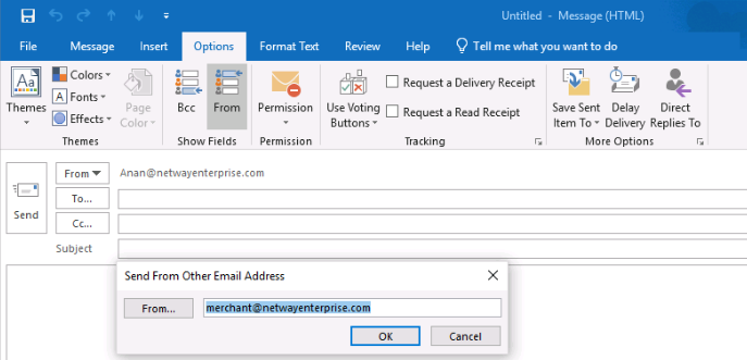ยกตัวอย่างเช่น ผู้ใช้งาน Anan@netway.co.th อยู่ในกลุ่ม admin@netway.co.th และต้องการส่งออกในนาม Group ตัวเองคือ admin@netway.co.th ไม่ใช่ anan@netway.co.th นั่นเอง