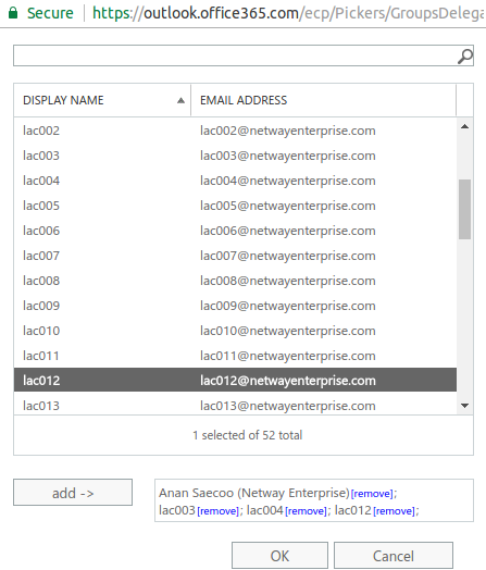 6. จากนั้นเลือก User ที่มีสิทธิ์ส่ง Email ในชื่อ Group (สามารถเพิ่มได้หลายคนโดยกด add->) หลังจากนั้นกด OK