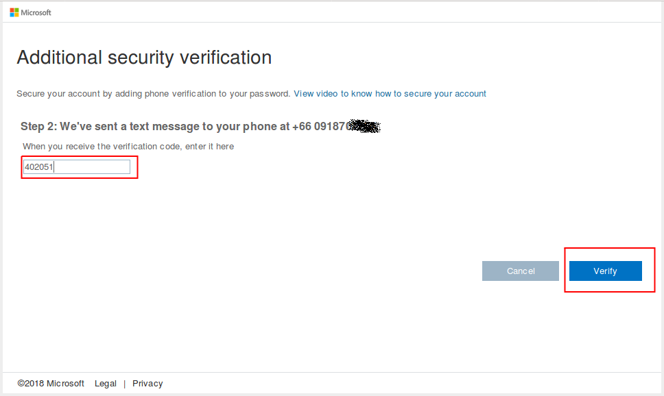 จากตัวอย่างจะเป็นแบบ Authentication phone โดยให้ส่ง SMS มาที่เบอร์ที่เจ้าของ Account ใช้งานอยู่