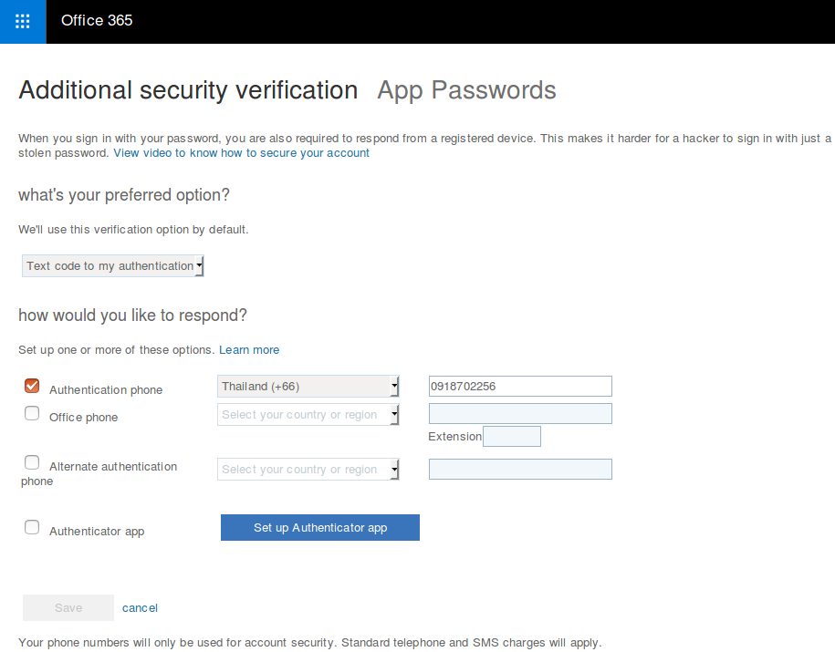 - Authentication phone : เป็นวิธีการยืนยันตัวตนผ่านข้อความ SMS หรือโทรศัพท์
