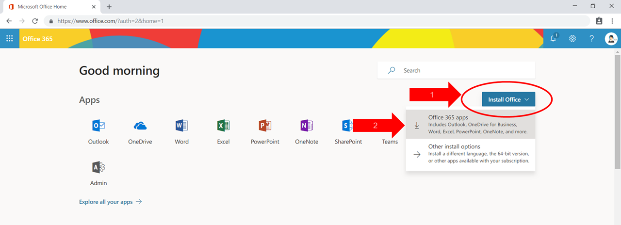 4.2 เมื่อเจอ Drop-down ให้เลือก Office 365 apps