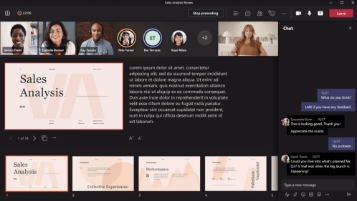 การนำเสนอ PowerPoint ในประสบการณ์ที่เหมือนเราอยู่ในห้องเดียวกัน แล้วต่อสายขึ้น Projector และได้เห็นหน้าทุกคนพร้อมคุยสองทาง ทั้งหมดนี้ทำได้ด้วยเครื่องเดียว ไม่ว่าจะเป็น Presenter Mode, แชท , เห็นหน้า, เห็น Live Reaction