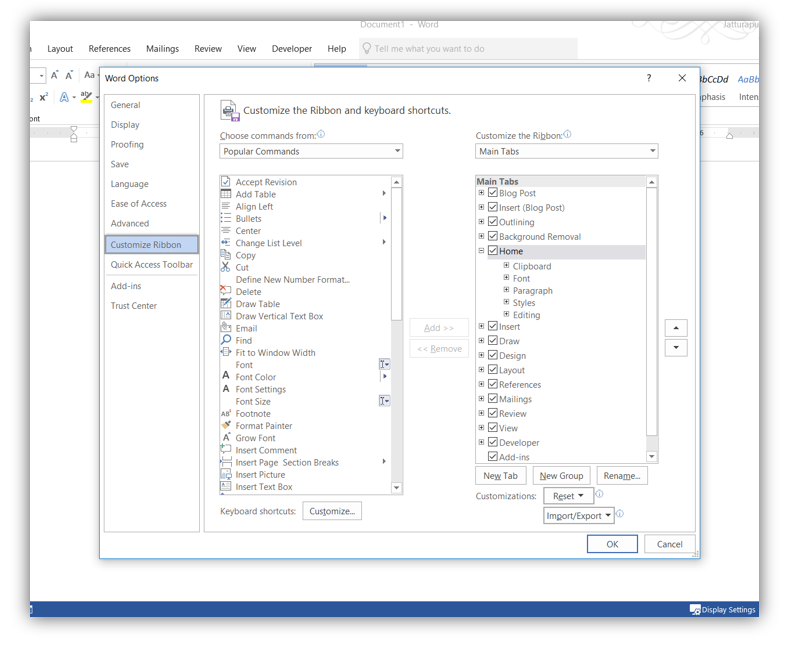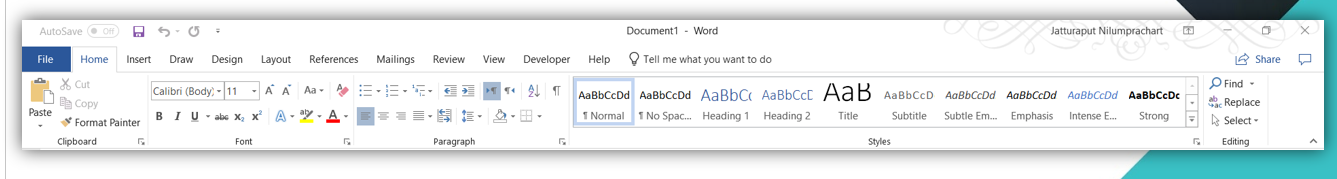 ในส่วนของเครื่องมือการทำงานบน Word เอง มีการแทรก Ribbon ใหม่ๆ เข้ามา และสามารถ Customize Ribbon เพื่อดึงเมนูลับ เช่น Draw หรือ Developer ขึ้นมาใช้งานได้ รวมทั้งมีฟังก์ชั่นเช่น Review และ Compare เพื่อเเปรียบเทียบเอกสารแต่ละเวอร์ชั่นด้วย
