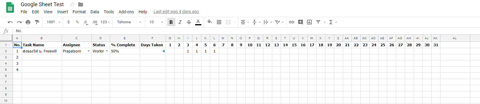 นอกจากนี้ Google Sheet ยังนำมาประยุกต์ใช้เป็น Project grantt chart ได้ด้วย โดยสามารถตั้งค่า Status และ % Complete สู้ได้กับ Microsoft Project เลยทีเดียวครับ
