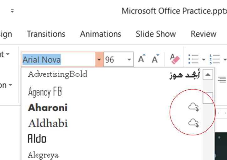 ส่วนเรื่องของ Font นั้นบน PowerPoint สามารถอัพเดทชุดอักษรได้เลยจากโปรแกรม โดยดูที่เครื่องหมายก้อนเมฆข้าง Font ใหม่ครับ