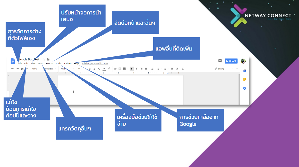 สำหรับฝั่งของ G Suite เองก็มีปังก์ชั่นที่เหมือนกัน โดยเริ่มจาก Google Doc