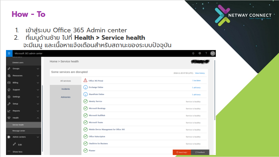 5. การดูปัญหาการใช้งานผ่าน Service Health