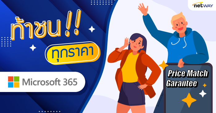 สำหรับท่านที่กำลังเทียบราคา Microsoft 365 อยู่ ในช่วงนี้ เราขอเสนอ Price Match Guarantee สำหรับราคาที่คุณต้องการ เพียงแค่ส่ง Quotation เสนอราคาอื่นๆ มาที่ช่องทาง Customer Service ของเราเช่น support@netway.co.th และ Chat พร้อมเงื่อนไขการันตีราคาที่ต่ำที่สุดที่คุณมีวันนี้