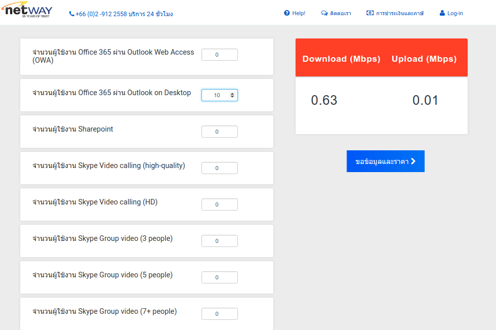 เราสามารถช่วยคุณคำนวณ Internet Bandwidth ได้ เพียงแค่ระบุรายละเอียดการใช้งาน Office 365 ที่นี่ _____________________________________________________________________________________________