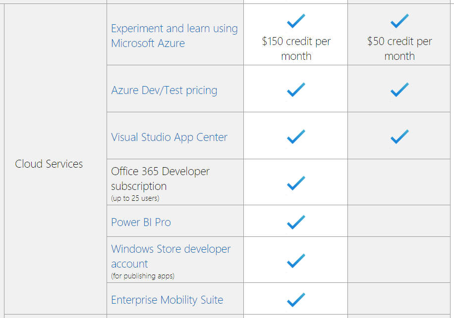 สำหรับภาคการศึกษาที่ต้องการใช้เครื่องเพื่อทำ Dev/Test ควรเริ่มต้นด้วยการใช้แพ็คเกจของ Visual Studio Cloud Subscription ก่อนครับ เพราะมี product อื่นให้ใช้และทดสอบด้วย เช่น Office 354, Windows Server และ SQL Server ครับ