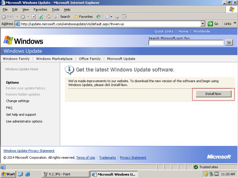 4. ถ้าหากเลือกหัวข้อ Automatic ให้รอจนกว่าจะมี Popup เตือนขึ้นมา และทำการเลือก Install แต่ถ้าเลือกเป็นหัวข้อ Windows Update Website. ให้รอจนกว่าเว็บไซต์จะตรวจสอบเสร็จเรียบร้อย แล้วจึงกด Install Now ดังภาพ